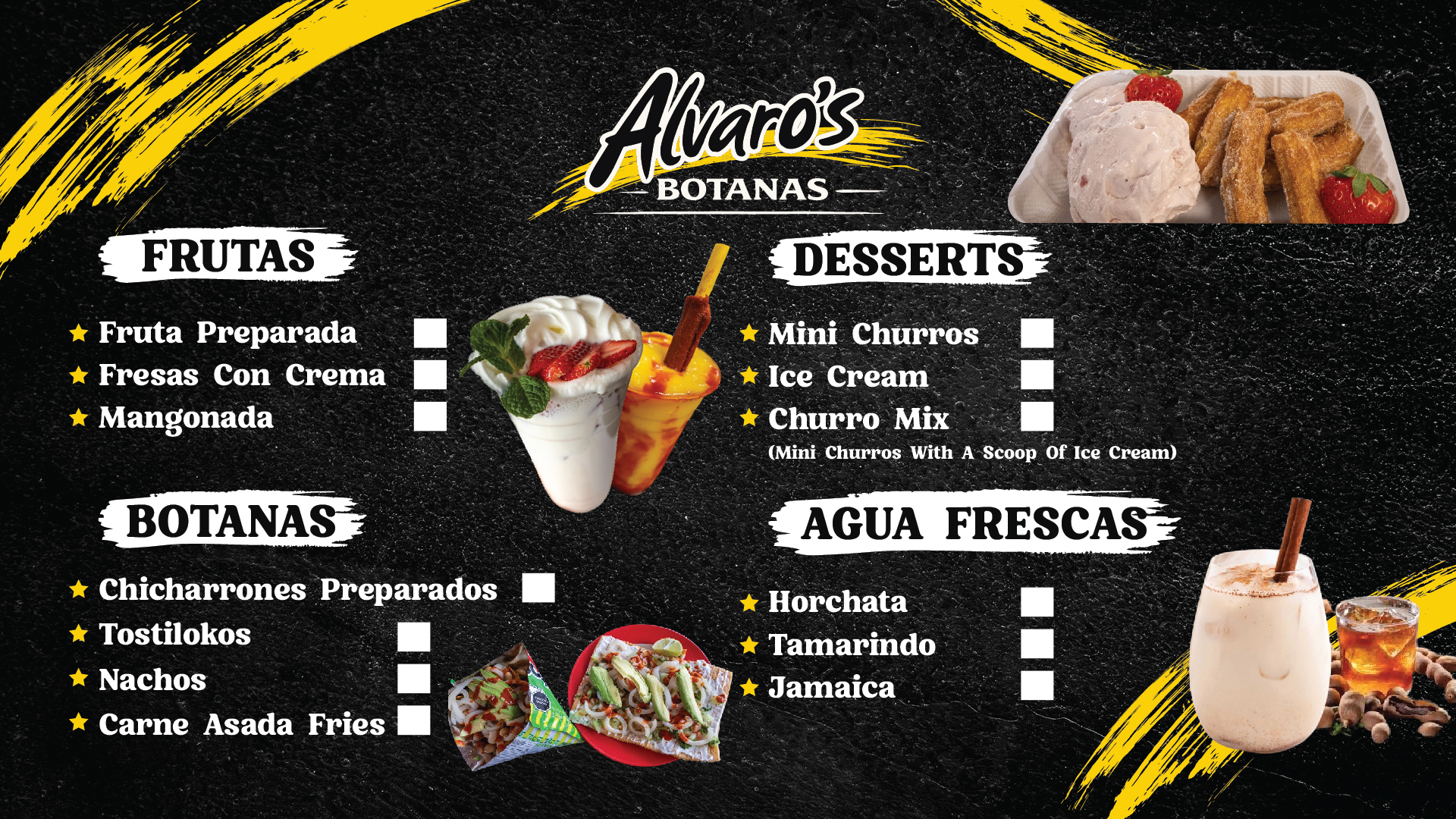 From our taco truck outside to the sweets and snacks inside, Alvaro’s has always been about bringing people together. Stop by, grab something sweet or savory, and enjoy it with the ones you love.