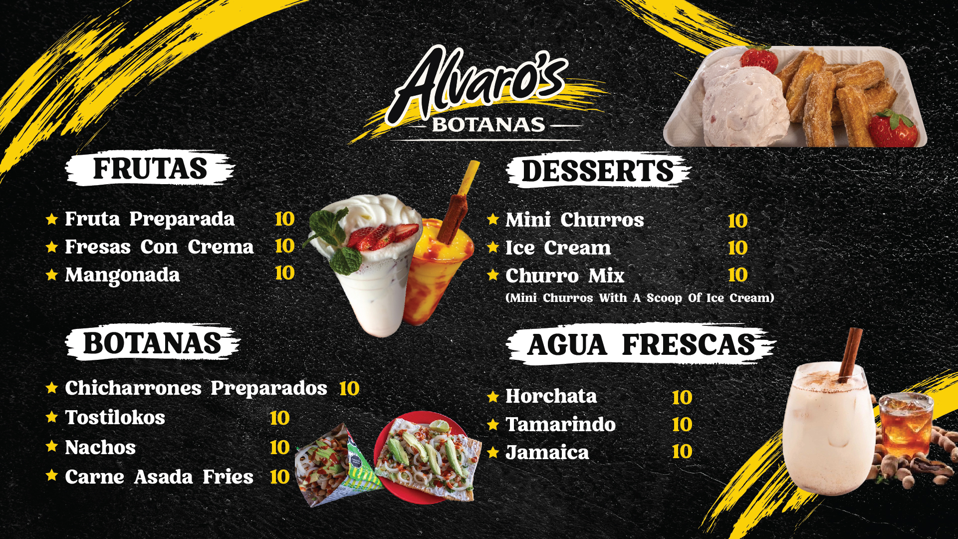 From our taco truck outside to the sweets and snacks inside, Alvaro’s has always been about bringing people together. Stop by, grab something sweet or savory, and enjoy it with the ones you love.